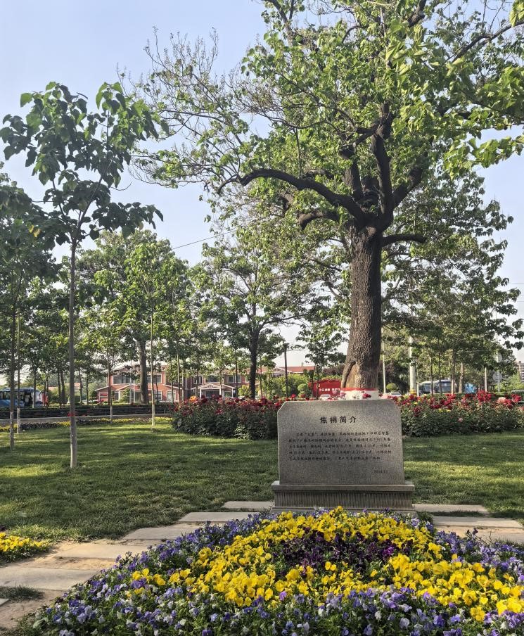 在焦裕祿干部學(xué)院大門正對面,是60年前焦書記親手栽種的一株泡桐苗,如今已是枝繁葉茂的大樹,為紀(jì)念焦書記,后人將這棵泡桐命名焦桐。大家在焦桐樹下,聆聽了焦裕祿同志的感人事跡。