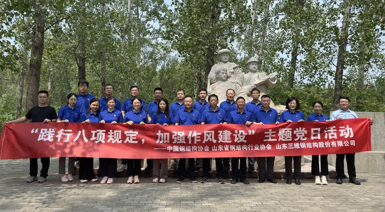 在紀(jì)念中國(guó)人民抗日戰(zhàn)爭(zhēng)暨世界反法西斯戰(zhàn)爭(zhēng)勝利80周年的重要?dú)v史時(shí)刻,為深入學(xué)習(xí)貫徹黨的二十大精神,充分發(fā)揮協(xié)會(huì)黨建引領(lǐng)作用,加強(qiáng)黨員隊(duì)伍建設(shè),提升黨組織號(hào)召力、凝聚力和戰(zhàn)斗力,中國(guó)鋼結(jié)構(gòu)協(xié)會(huì)、山東省鋼結(jié)構(gòu)行業(yè)協(xié)會(huì)與山東三維鋼構(gòu)股份有限公司于2025年8月29日至30日共同開(kāi)展黨建聯(lián)建活動(dòng)。本次活動(dòng)以“黨建引領(lǐng)聚合力,攜手共建促發(fā)展”為主題,通過(guò)企業(yè)黨建交流與紅色教育基地參觀學(xué)習(xí)相結(jié)合的方式,進(jìn)一步增強(qiáng)黨性修養(yǎng),凝聚行業(yè)力量。