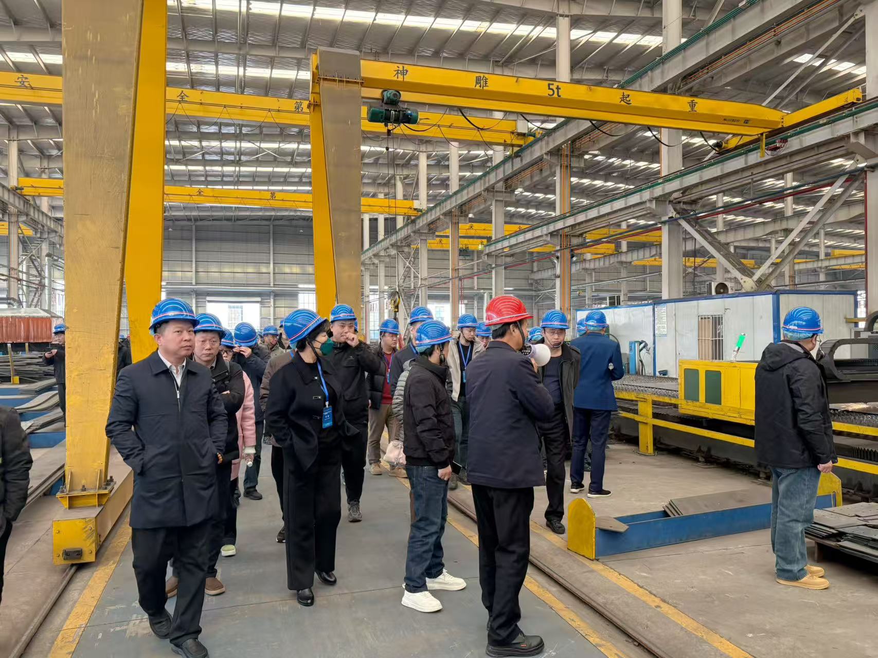 5日上午,與會人員實地參觀了安徽偉宏建材科技有限公司智能生產線和綠色廠區,近距離感受了新型綠色低碳鋼結構企業的先進制造與高效運營。