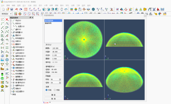 (1)創(chuàng)新點(diǎn)一:開發(fā)了大跨度散料貯倉網(wǎng)殼的設(shè)計(jì)軟件與新型節(jié)點(diǎn)體系。