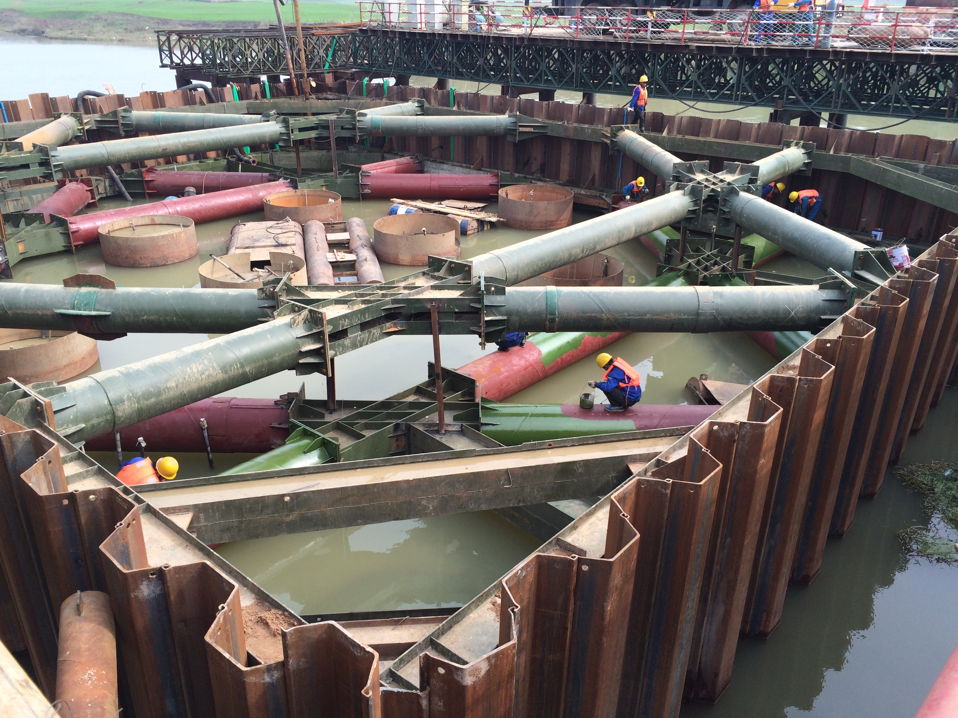 (2)復雜水文地質條件下鋼圍堰精準施工控制技術