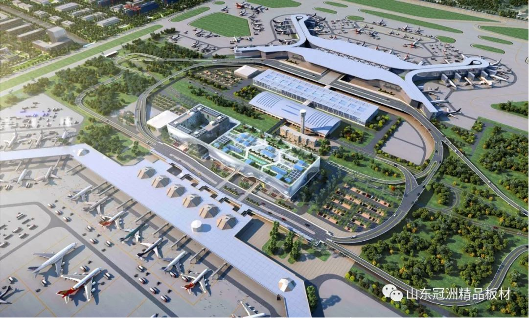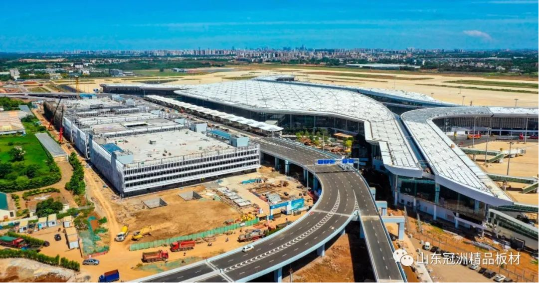 機(jī)場航站樓圍護(hù)系統(tǒng)選用冠洲氟碳彩涂板。