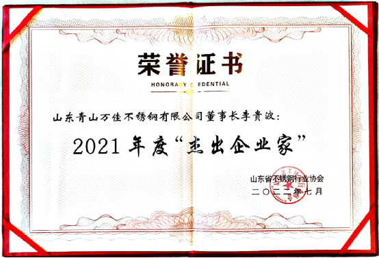 此次會議針對中國的不銹鋼產(chǎn)業(yè)進行了高維度、多視角的深度剖析,并對山東省的不銹鋼企業(yè)家進行了評選表彰,青山萬佳董事長李貴波被評為“杰出企業(yè)家”,總監(jiān)王誠振被評為“齊魯工匠”,肯定并勉勵大家擁抱匠心精神去創(chuàng)新發(fā)展。