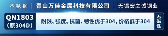 青山萬佳宏之誠的QN高氮不銹鋼的推廣應用獲得重大進展,成功應用于食品機械、鋼構屋頂、養殖設備、幕墻門窗、造紙儲罐、水箱等領域,并創新性的突破啤酒儲罐、電梯轎廂和冷鏈冰箱領域的應用,因其過硬的品質和優秀的性價比,獲得了客戶和質量體系機構的贊譽和認可。